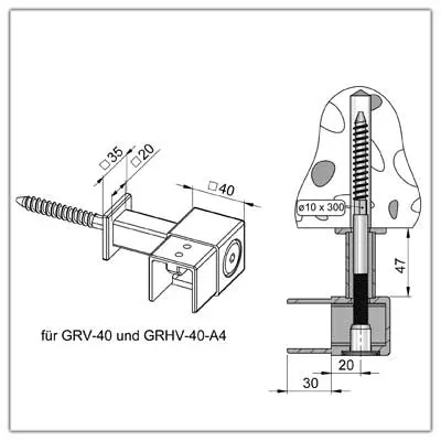 Glasrohrhalter für Rohr 40 x 40 x 1,5mm rechts / V4A
